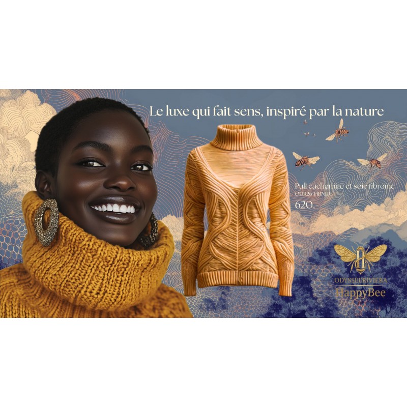 Le pull Le Riviera est une pièce d’exception en maille 3D, alliant la noblesse du cachemire brut à la brillance structurelle de la soie fibroïne.
